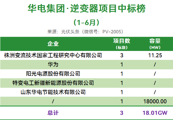 华电集团2025年上半年有3个项目定标,合计容量18.01GW。