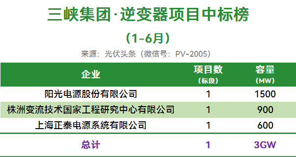 2025年上半年,三峡集团有一个集采项目,且明确了分配份额。阳光电源、株洲变流、正泰电源成为最大赢家。