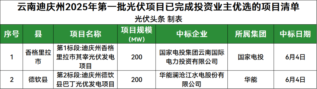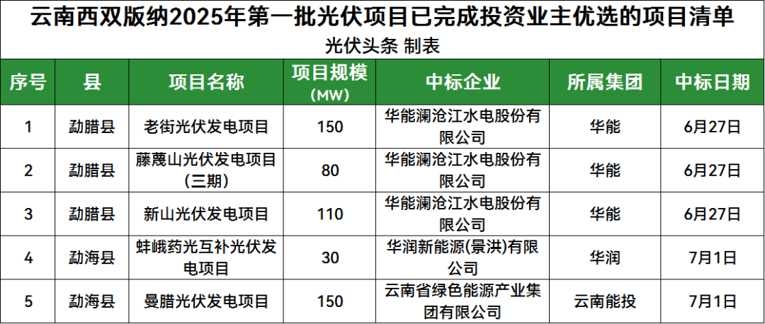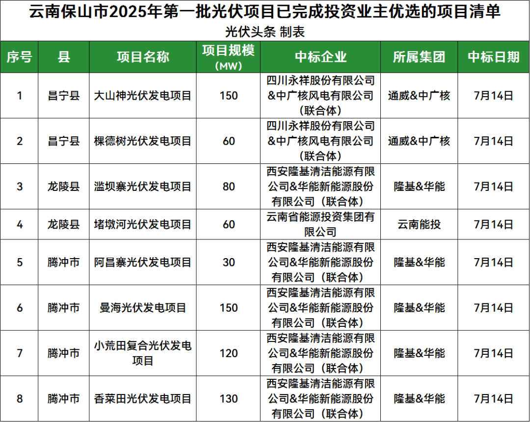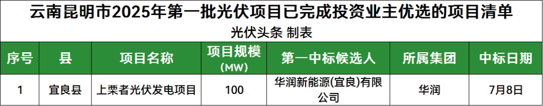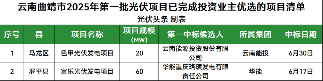 近期,云南省各地陆续公布2025年第一批光伏项目投资主体优选结果。