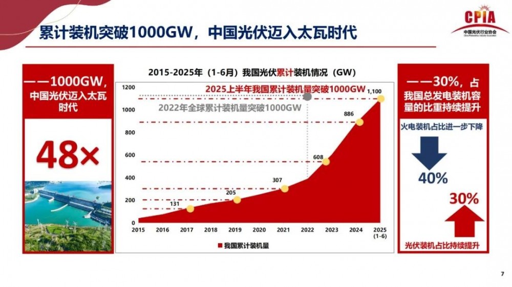 2025上半年我国累计装机量突破1000GW,中国光伏迈入太瓦时代。