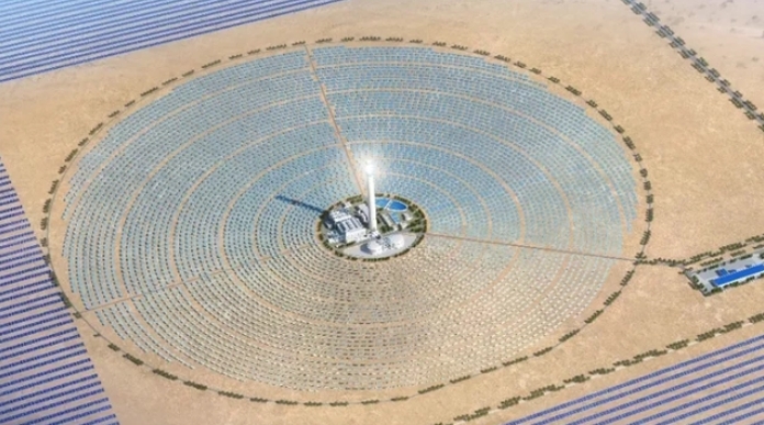 项目融合了光热与光伏技术,光热发电部分容量达100MW,光伏发电部分则高达900MW。光热部分采用塔式聚光集热系统,镜场面积达到52.479万平方米,储热时间长达12小时。吸热器的中心标高为190米,额定输出功率为314MWt。吸热塔采用混合结构,底部174米为混凝土结构,顶部46米为钢结构,并配有1*100%的蒸汽发生系统,连接1台100MW汽轮发电机组供汽。