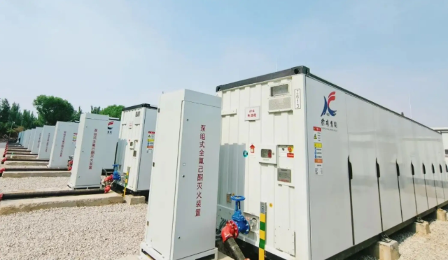 该电站位于徐州市淮海国际港务区垞城片区,走进储能电站,磷酸铁锂电池舱以固定间距整齐排列,电能的下载与上传正有序进行。