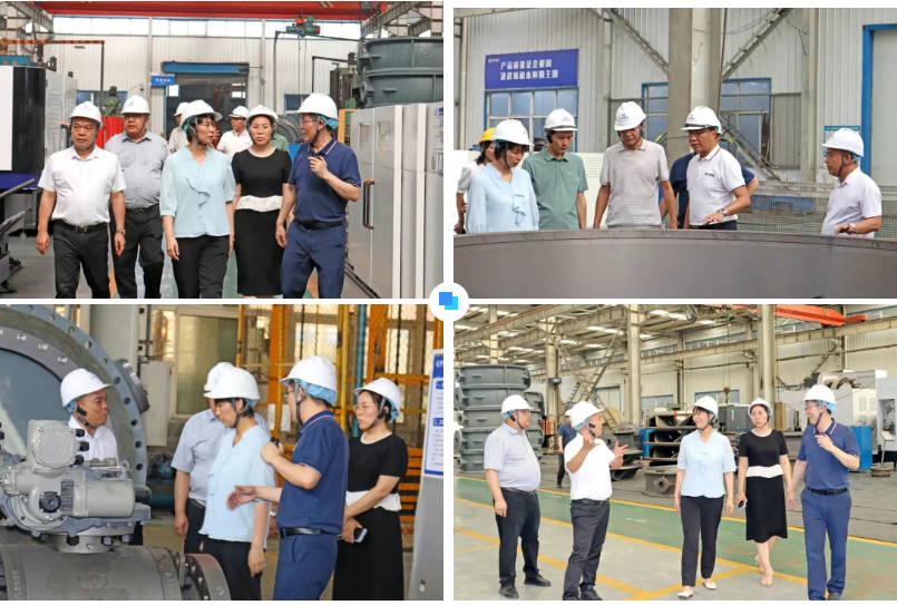在生产车间,考察团详细了解了大口径全金属硬密封蝶阀、旋球阀、料浆阀等核心产品的制造流程与工艺创新,对泉舜流控在材料选用、数控加工、在线检测等环节的高标准管控给予了高度评价。双方技术人员就特种工况用阀门的结构优化与应用前景,展开了专业层面的深入探讨。