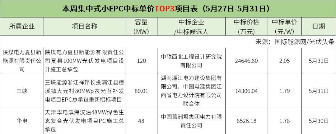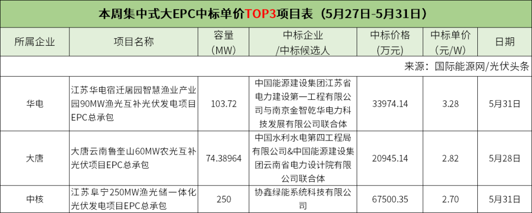 3个集中式大EPC项目,均价2.93元/W