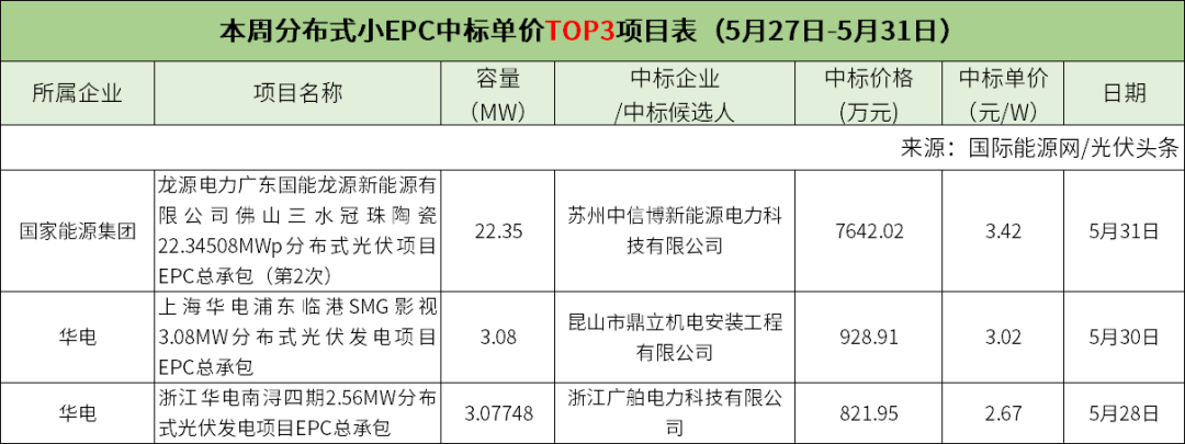 此外,本周分布式小EPC、集中式小EPC招标容量Top3项目具体情况如下:
