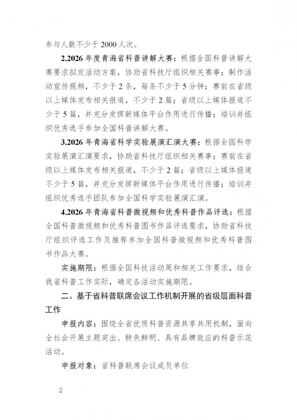 附件1:青海省2026年度科学技术普及专项项目申报指南.doc