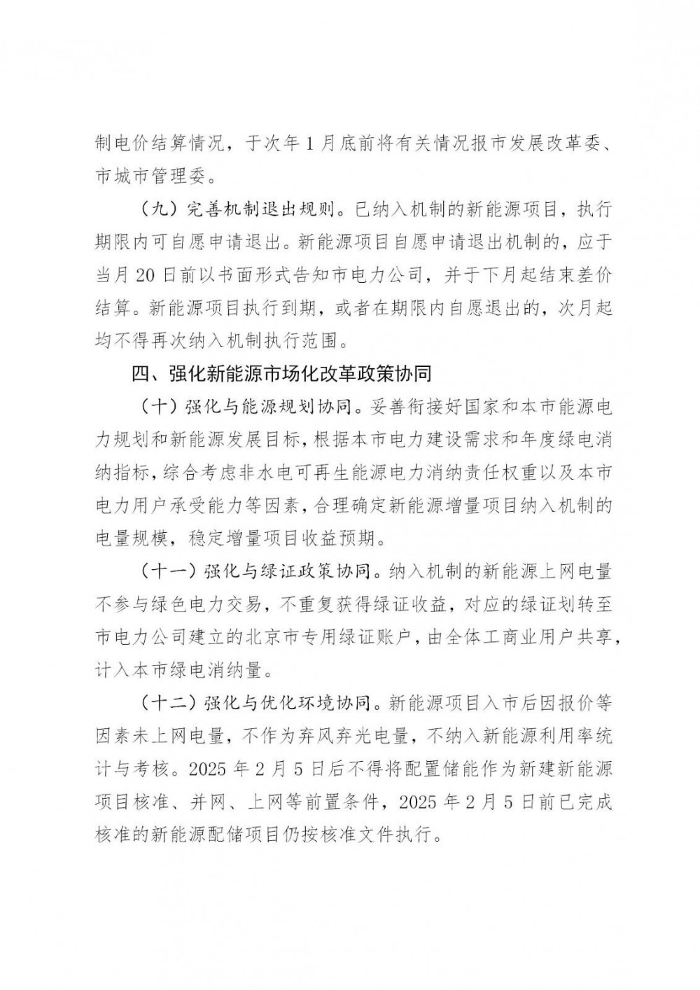 电量规模。2025年新增纳入机制电量规模结合2024年同期投产的新能源项目年度上网电量规模和可再生能源发展规划需要确定。后续年度新增纳入机制电量规模由市发展改革委会同市城市管理委按照上一年度本市完成国家下达的年度非水电可再生能源电力消纳责任权重情况,以及用户承受能力等因素确定。