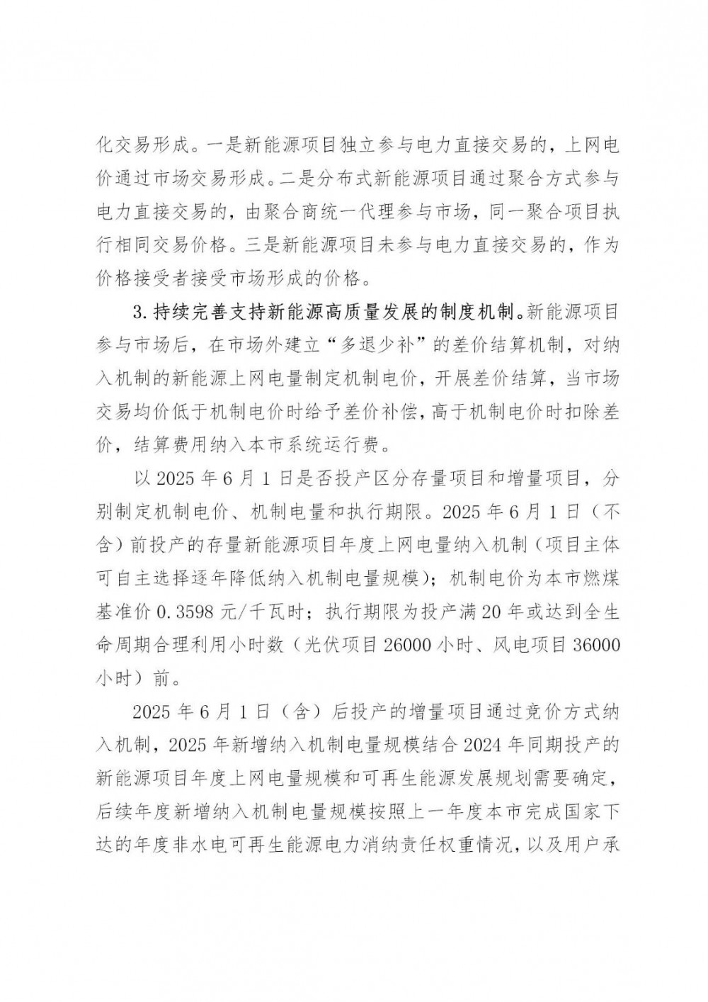 该文件明确了新能源存量/增量项目的机制电价、电量、执行期限。