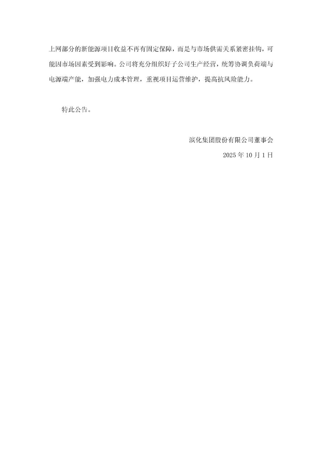 10月1日,滨化集团股份有限公司发布关于投资建设源网荷储一体化项目的公告。