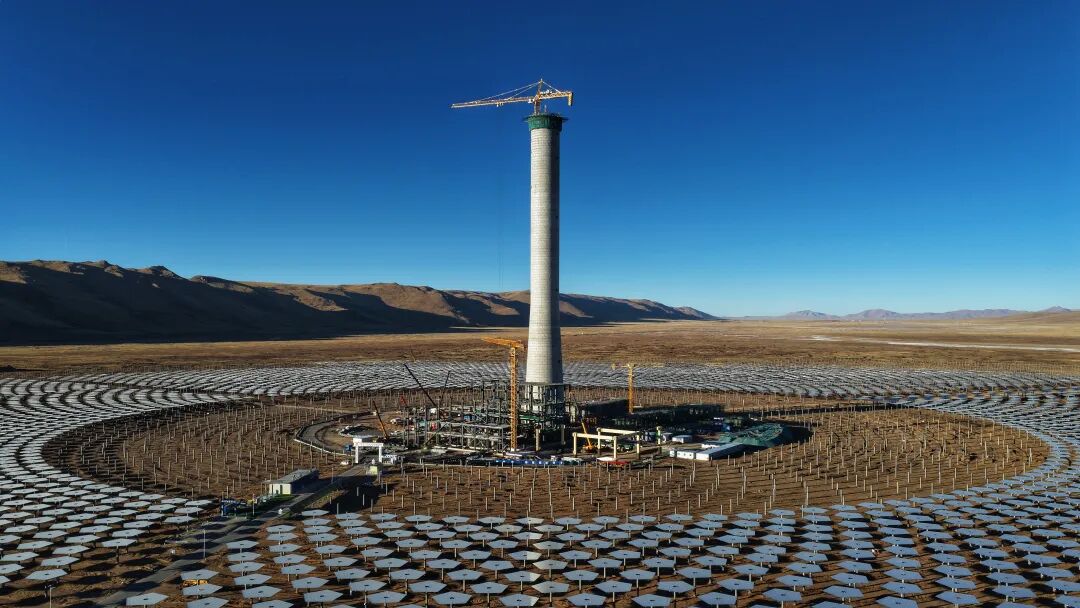 作为项目“能量中枢”的吸热塔筒身高度185米,底部半径12.5米,顶部半径8.5米,吸热塔成功封顶为高寒高海拔地区高水准建设光热项目核心构筑物提供新范式。