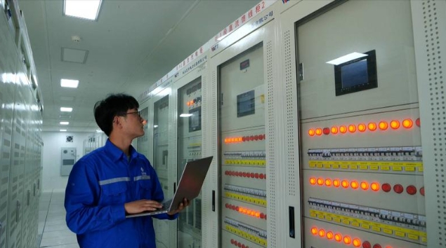 在董岭乡山路两旁的山梁上,整齐的光伏板延展成海,如同一片蓝色海洋。据悉,东乡县200兆瓦光伏发电项目由中电建新能源集团股份有限公司投资建设,项目总投资11.23亿元。新建1座330kV升压站,配套20兆瓦/40兆瓦时储能设施。“项目光伏区总占地面积约12000亩,于2023年7月15日开工建设,2024年2月1日并网发电。项目同期配套建设一座330千伏升压站,该变电站为临夏州首座330千伏级变电站。”甘肃东乡禹曙光伏电站值班长孔维武介绍说。