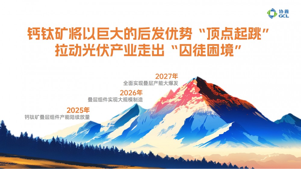 钙钛矿叠层效率的起点,超过了晶硅组件效率的终点。未来十年,钙钛矿都将处于黄金时代。钙钛矿叠层转化效率的理论上限是45%,量产效率上限大概在36%左右,按照每年提升一个点的幅度,从今年可突破27%的效率算起,2035年前钙钛矿都将保持旺盛生长态势。未来五年,钙钛矿叠层电池市场规模有望实现几何倍增。在相关国家实验室与企业联合攻关推动下,钙钛矿吉瓦级、10吉瓦级项目全面整合第三代光伏新科技,通过数实融合、流程重构,从原料到终端一体化的超级制造单元即将横空出世。2025年钙钛矿叠层组件产能陆续放量,2026年实现大规模制造,2027年全面实现叠层产能大爆发。钙钛矿将以巨大的后发优势“顶点起跳”,拉动光伏产业走出“囚徒困境”。