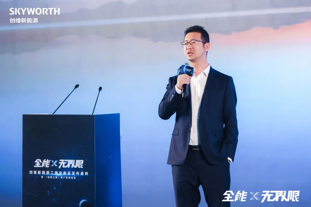 随后,创维光伏执行团队副总裁肖振发表演讲,详述创维集团新能源版块发展。作为创维集团新能源战略核心,创维新能源集研发、生产、销售于一体,涵盖并网逆变器、储能系统等系列产品。