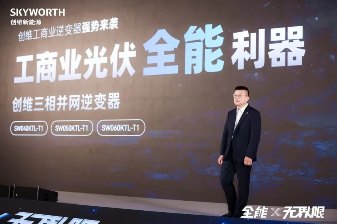 面对全球能源转型,创维新能源以创新为驱动,持续客户提供高效绿色能源方案,本次发布会现场推出的40-60kW工商业并网逆变器是专为中小型工商业项目需求而设计的,具备高转换效率、成本优化、安全性强、宽电压范围操作、智能维护管理以及内置“四可”解决方案等多项先进特性。这些特点不仅提升了项目的经济效益,也为用户带来了更稳定可靠的服务体验。