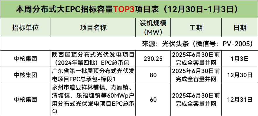 此外,本周分布式小EPC、集中式小EPC招标容量Top3项目具体情况如下:
