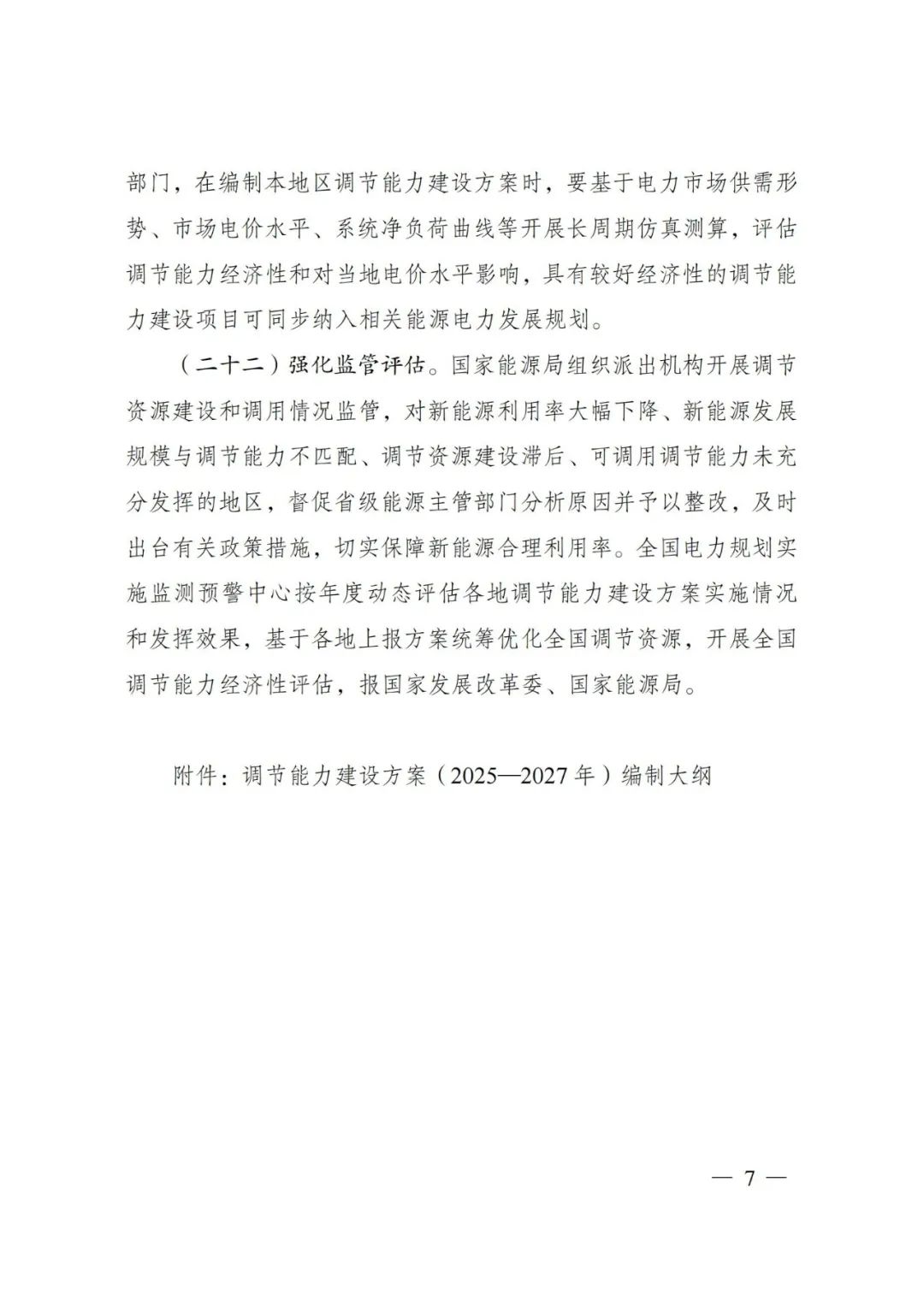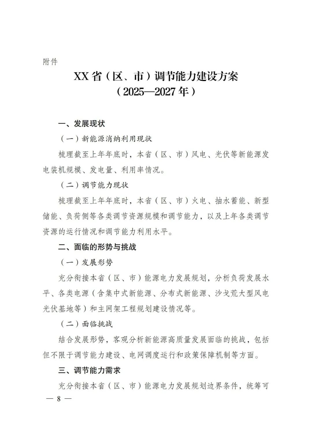 为进一步落实《加快构建新型电力系统行动方案(2024—2027年)》和《关于加强电网调峰储能和智能化调度能力建设的指导意见》,着力提升电力系统调节能力和调用水平,有效支撑新能源消纳利用,国家发展改革委、国家能源局制定了《电力系统调节能力优化专项行动实施方案(2025—2027年)》。现印发给你们,请认真组织落实,因地制宜推进调节能力建设。