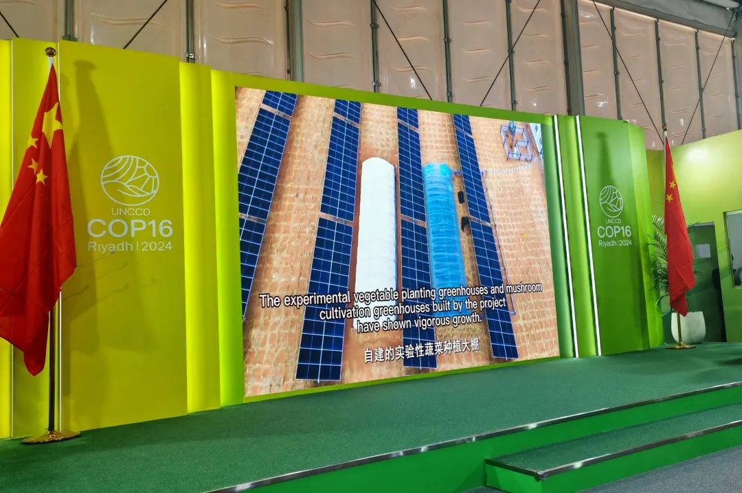 2024年12月,《联合国防治荒漠化公约》第十六次缔约方大会(UNCCD COP16)在沙特阿拉伯首都利雅得召开,中国政府应邀派代表团参会,国家能源集团龙源电力作为代表团成员单位出席会议,分享光伏治沙经验,为全球沙漠治理提供可复制、可推广经验。
